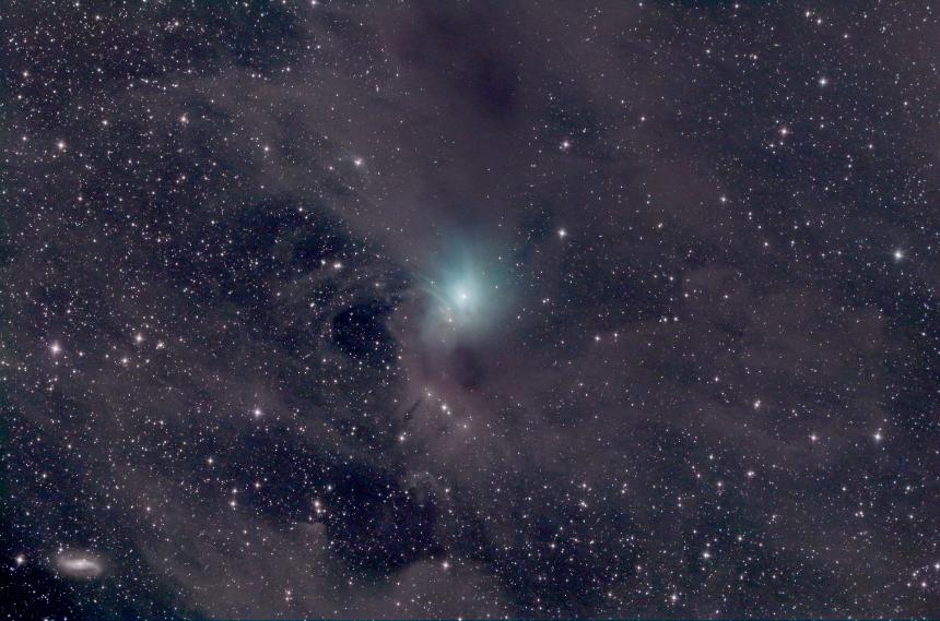 Light travels quickly. Every second it covers about 300,000 km. So let's think about that for a moment, IC2631 above, is in our Milky Way Galaxy and lies approximately 500 light years away in the Southern Sky. That means that the photons that arrived at our telescope and triggered the CCD camera chip to record this image left their source about 500 years ago. Every second of every minute of every hour of every day since they have been doing 300,000 km per second.